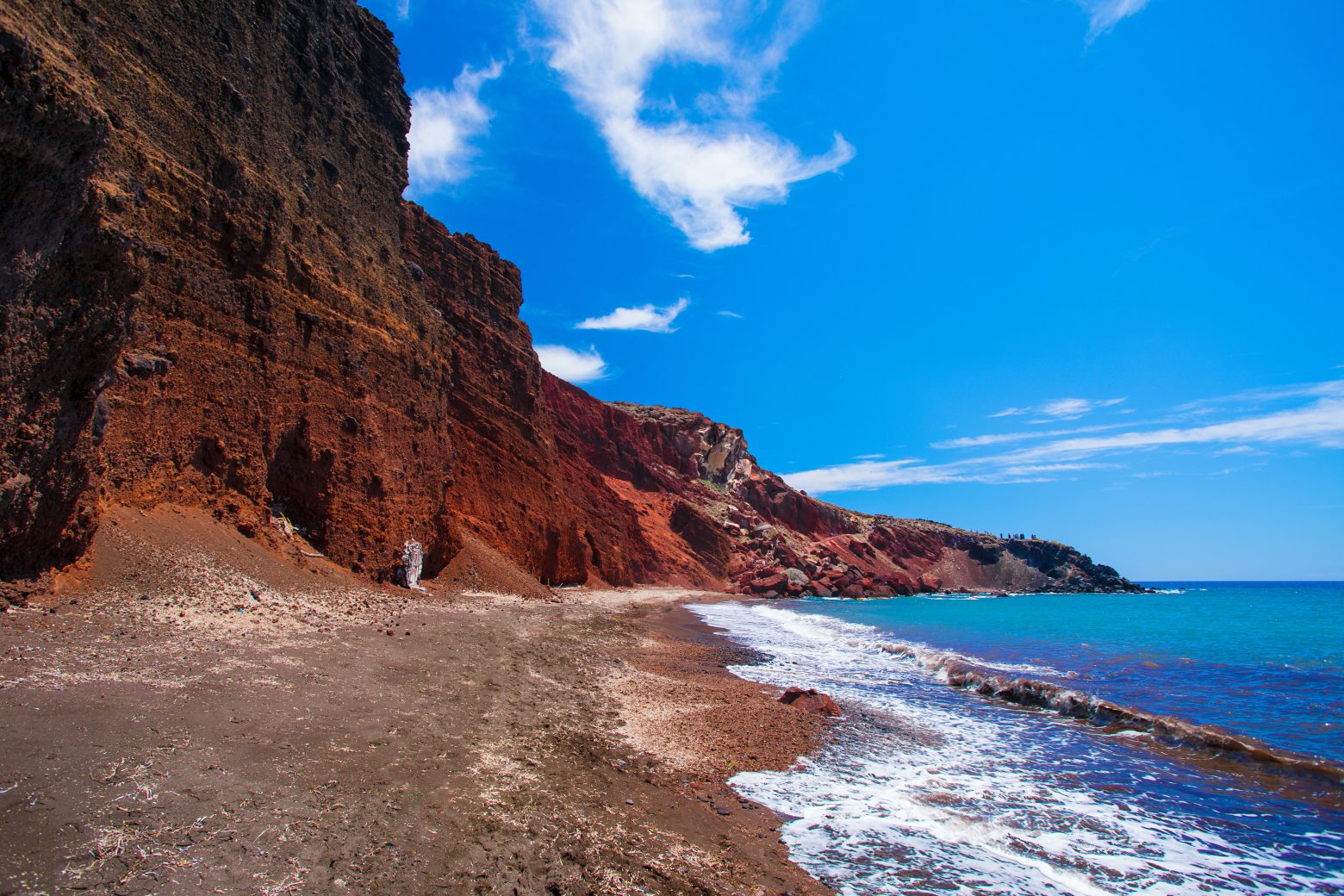 • Relax at the Famous Red Beach: After your archaeological adventure, unwind at one of Santorini’s most picturesque beaches. The Red Beach is renowned for its stunning red-hued cliffs and crystal-clear waters, creating a perfect spot to relax and enjoy the natural beauty of the island.