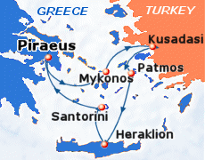 Get on board the luxurious cruise ship and explore the Aegean sea with a magical 3, 4, or 7 days cruise.